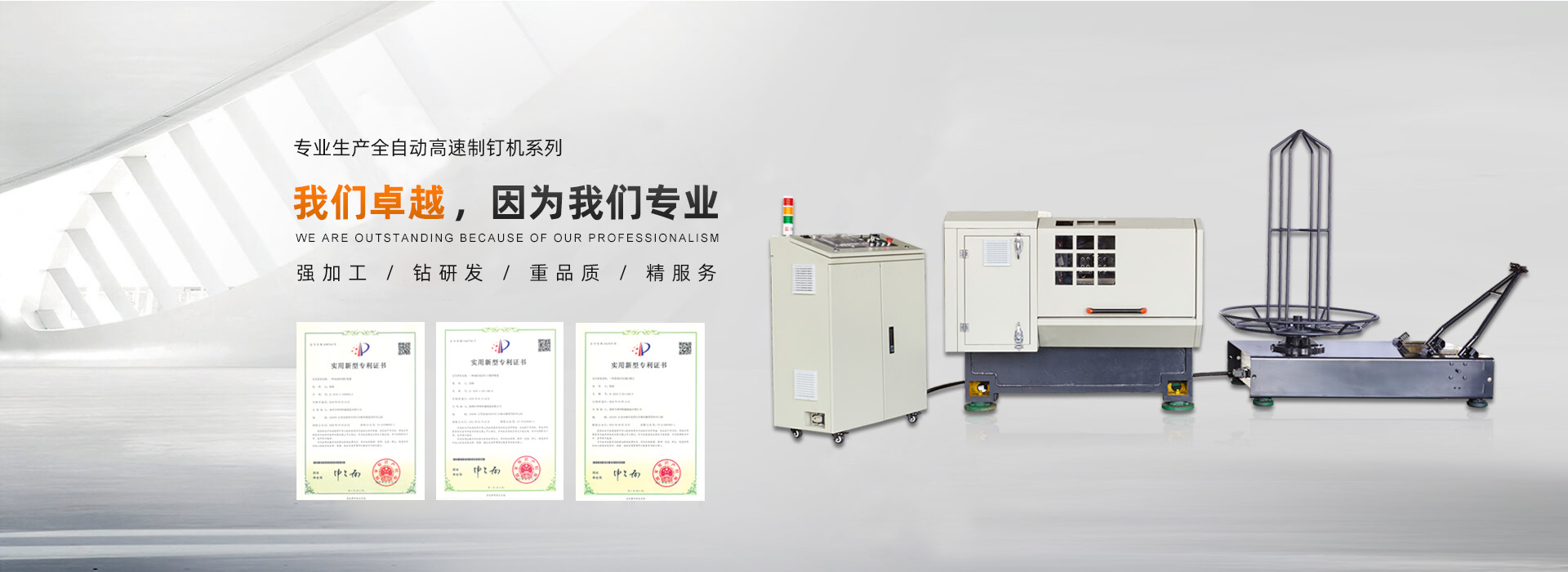 專業(yè)生產(chǎn)全自動(dòng)高速制釘機(jī)系列、全自 動(dòng)拉絲機(jī)系列、高速卷釘機(jī)